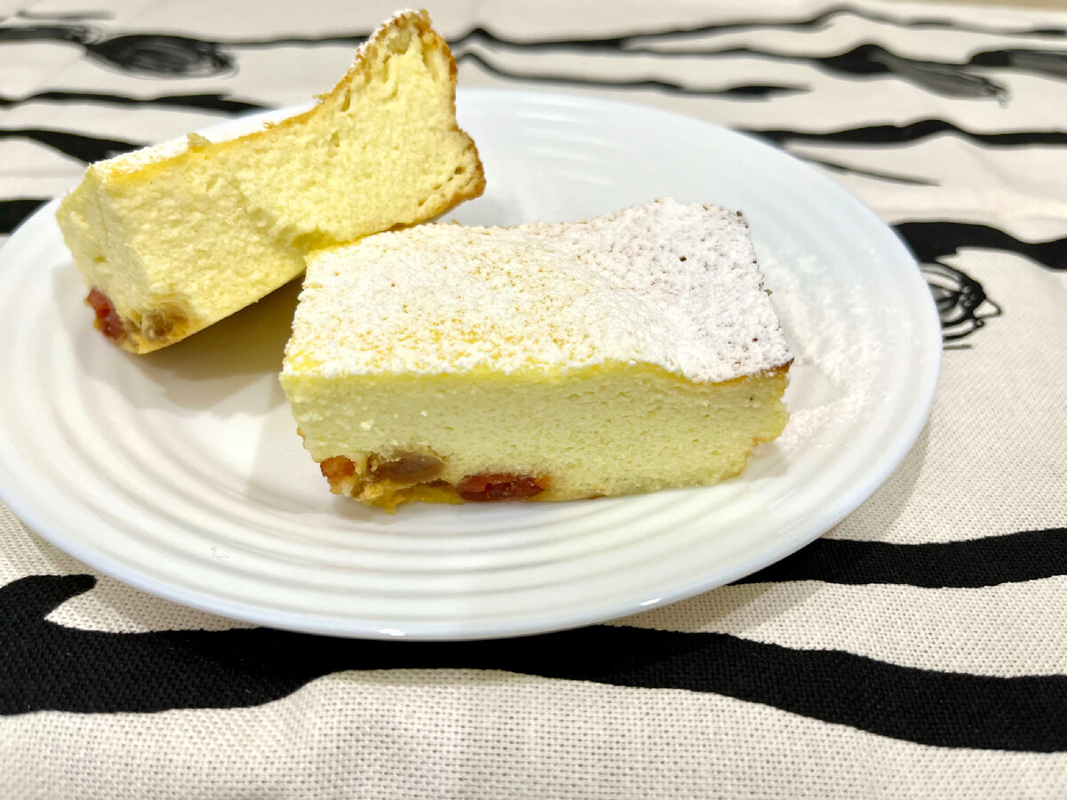 Дадим запеканке время остыть, стабилизироваться. Она слегка опадет, станет плотнее, а нарезанные кусочки будут хорошо держать форму.
