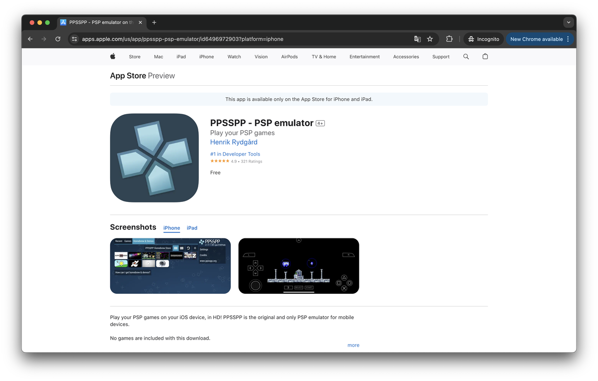 PPSSPP, популярный эмулятор игр для PlayStation Portable (PSP), наконец-то доступен в официальном магазине приложений iOS для пользователей iPhone и iPad. Это произошло после недавнего изменения политики Apple, разрешившей эмуляторы игр на своей платформе. PPSSPP присоединился к таким эмуляторам, как Delta, Gamma и RetroArch, предлагая пользователям легальный и удобный способ переиграть классику PSP. «Спустя почти 12 лет PPSSPP наконец-то был одобрен для iOS App Store!» — отмечают разработчики в своем блоге, поблагодарив Apple за пересмотр политики. Однако стоит учитывать некоторые технические ограничения. В отличие от аналогов на других платформах, в iOS-версии PPSSPP отсутствует поддержка JIT-компиляции (Just-In-Time). Это может повлиять на производительность некоторых игр. Кроме того, в будущих обновлениях планируется добавить такие функции, как поддержка iPad Magic Keyboard. Бесплатная версия PPSSPP уже доступна для загрузки в App Store. За $ 4,99 можно перейти на «премиальную» вер