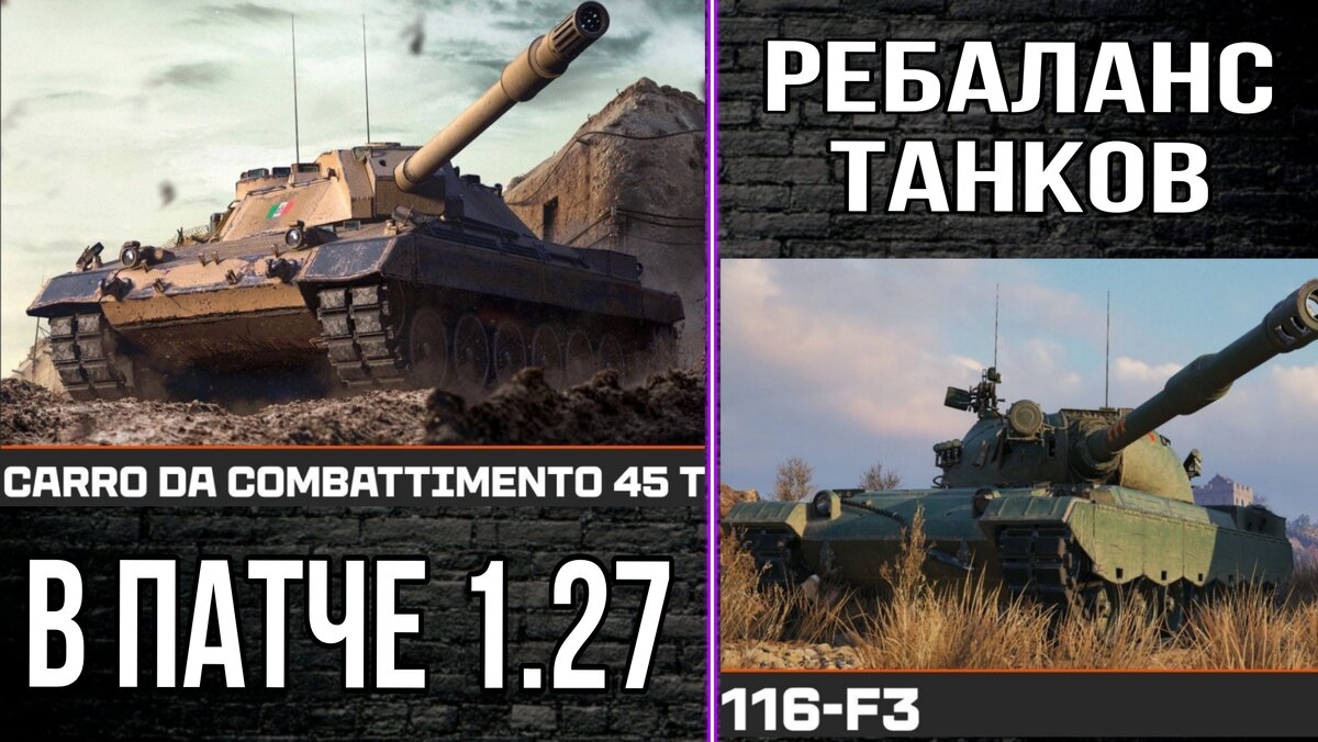 Привет танкисты! В этой статье я познокомлю вас с очередными изменениями в технике, которые произойдут в обновлении 1.27. Уверен на сто процентов , что не только эти танки подвергнуться ребалансу. Но пока это вся информация. Далее ближе к выходу обновы думаю будет ещё интереснее.