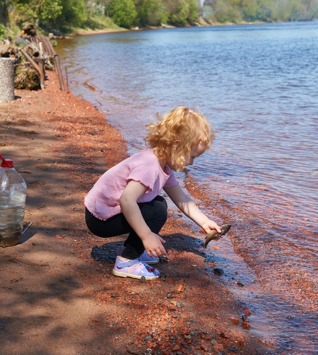 Дочке очень понравился процесс, просто полный восторг. Какое-то время рыбки даже плавали около берега, и мы смогли наблюдать их в воде.