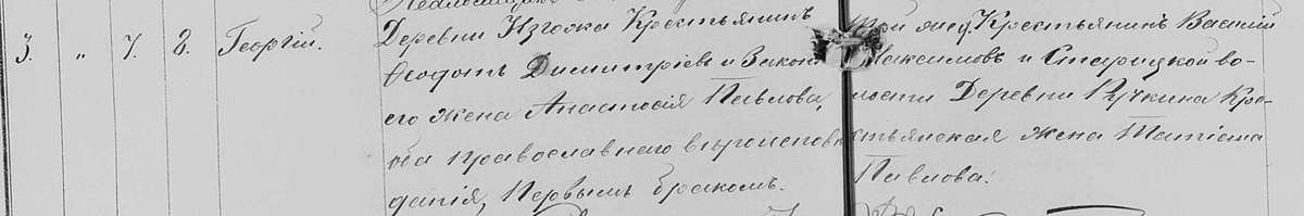 - Крестная мать: крестьянская жена Аксинья Петрова (Старицкой волости деревни Ручкина)