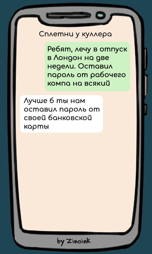 Люди делятся в отпуске на два типа: тех, кто скидывает в рабочий чат фотки с пляжа и тех ... у кого есть совесть). Герой следующей переписки явно очень не хочет стать первым.