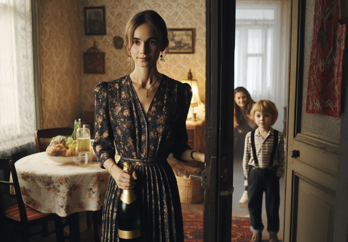 Лена нервно ходила по комнате, собираясь на вечер с подругами. На часах было уже семь вечера, а Андрей всё ещё не пришёл с работы. Она посмотрела на своё отражение в зеркале: простое платье, легкий макияж. «Не слишком ли это?» — подумала она, но потом отбросила сомнения.
