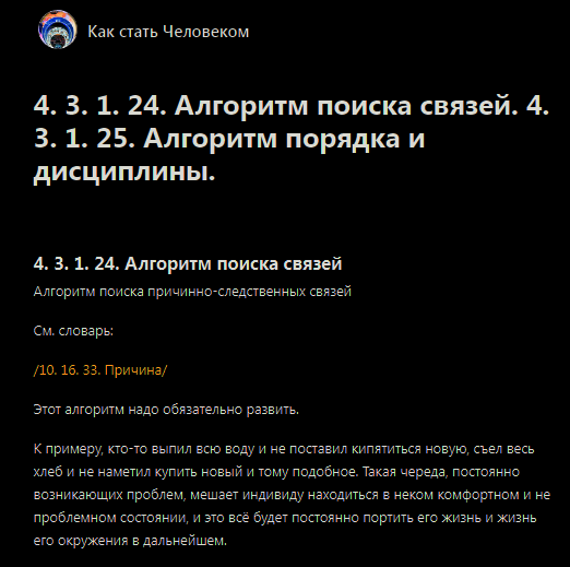 То есть, банальный анализ своей жизни, и выявления истотных причин всего, что с вами происходит сейчас, с фиксированием всего этого в письменном виде, создаёт условия для наработки именно алгоритма, о котором идёт речь.