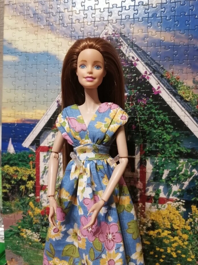 Здравствуйте! Рада приветствовать на своём канале по пошиву одежды куклам! В прошлой статье я сшила платье для своей Констанции, но выкройку надо было откорректировать Вот такое платьице из винтажного хлопка На этом фото замеры куколки, первые записи я взяла из интернета по замерам фирменной куколки Poppy Parker, а рядом замеры моей, которая приехала с Али. Отличаются размеры только длинной ног, поэтому девочки если есть такая куколка, моя выкройка, как раз впору А платье я шила вот по этому рисунку, просто набрала в интернете название платья 50-60 годов. Из всех платьев мне понравилось именно такое, но без выкройки я куклам не шью, сшила пробное платье, юбочка на первом платьице выкроила просто прямоугольником и верх по талии прособрала на нить и пришила к лифу платья Второе платье я шила с юбочкой полусолнце. И хочу вам показать как кроится такая юбочка! Как вы думаете, число П -3,14 нужно при выкройке? Какой был Архимед, разве он мог предположить, что это число будет применяться в