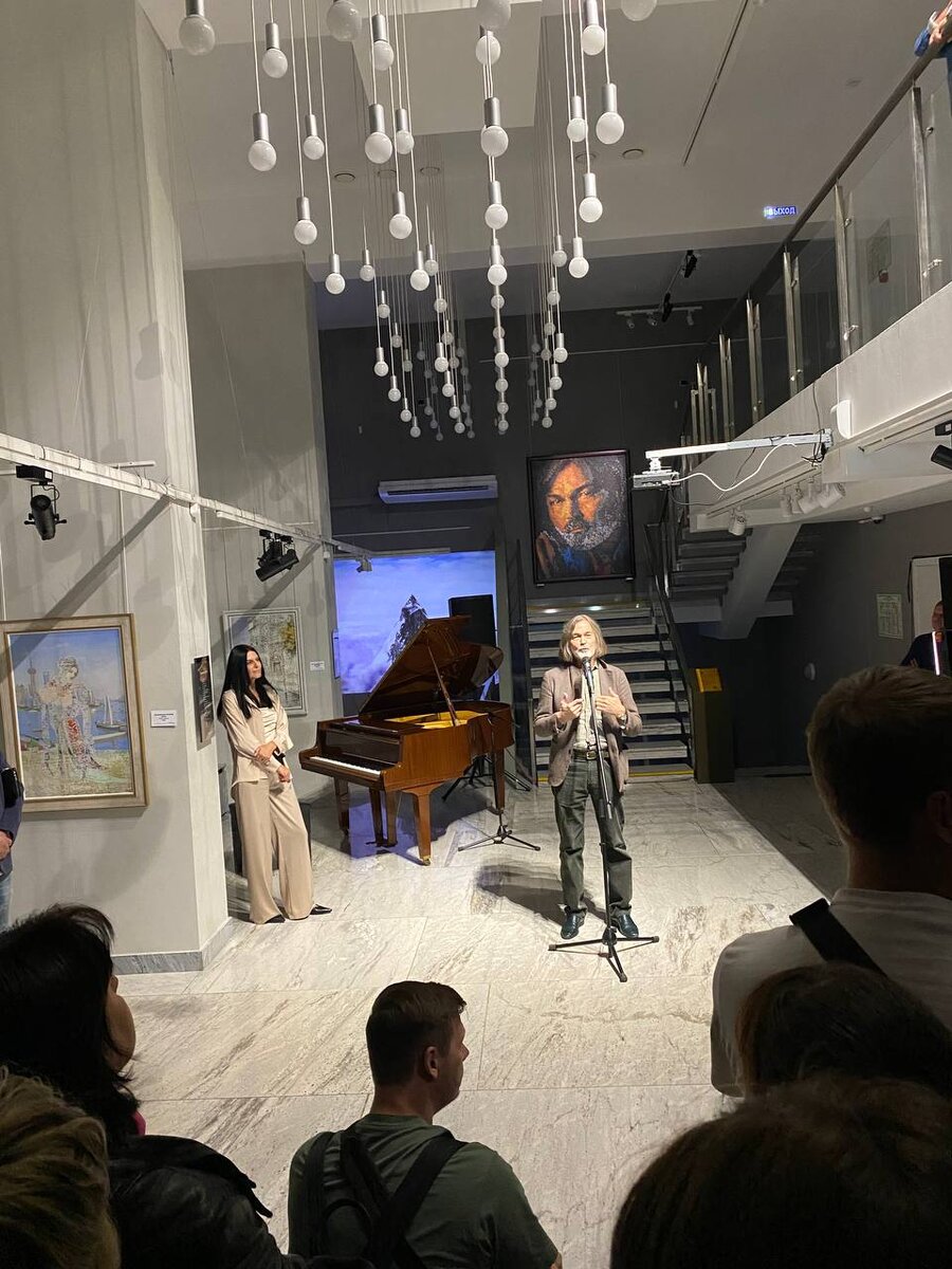 17 мая в Волгоградском музее ИЗО имени Машкова открылась персональная выставка знаменитого художника Никаса Сафронова. Подробности сообщил депутат облдумы Руслан Шарифов, который одним из первых побывал на открытии. Парламентарий отметил, что Сафронов — друг его семьи и хороший знакомый. — Экспозиция «О чём молчат картины» объединила более 70 графических и живописных работ. В том числе, написанных в технике Dream Vision. Это авторский стиль Никаса Сафронова, который часто определяют как «переплетение реальности и сновидения». В Волгограде Никаса Сафронова очень хорошо знают и любят. Выставляется он у нас и посещает город-герой не впервые. Приятно, что художник такого уровня находит время и силы, чтобы порадовать не только столицу, но и другие города необъятной России и своим творчеством, и присутствием, — отметил Шарифов. Те, кому удалось попасть именно на открытие выставки, могли насладиться творчеством не только Никаса, но и его сына Луки Затравкина — талантливого пианиста. Церемони