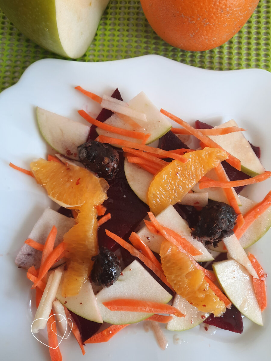 Салат из свеклы с апельсином 🍊 Свеклу можно соединить не только с чесночком и майонезом или белым рассольным сыром. Попробуйте новый рецепт с апельсином. Расклад продуктов на 1 порцию салата: Заправка - растительное масло. Необычное сочетание продуктов дает неожиданно приятный кисло-сладкий вкус. Сельдерей придает пряную нотку. Цитрус явно освежает. 👍 Салат из молодой капусты с апельсином 🍊 Отставьте на сегодня привычные любимые рецепты салатов из свежей капусты с огурчиком, болгарским перцем или с помидором. Приготовьте вот такой необычный салат, он точно достоин вашего внимания! На 1 порцию понадобится: Думаете, что капуста не пойдет с апельсином? А вот и нет. Приятно на вкус, сочно и полезно. Мой вывод по дегустации новых салатиков: на первое место поставила бы однозначно салат из редиса, на второе - не могу выделить, равноценное впечатление и из свеклы и из капусты. И еще - все салаты выглядят ярко, даже празднично. Так что смело можно и на стол для гостей предложить к