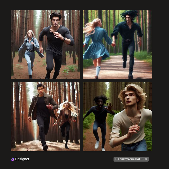 Блондинка гоняется за высоким черноволосым парнем в лесу