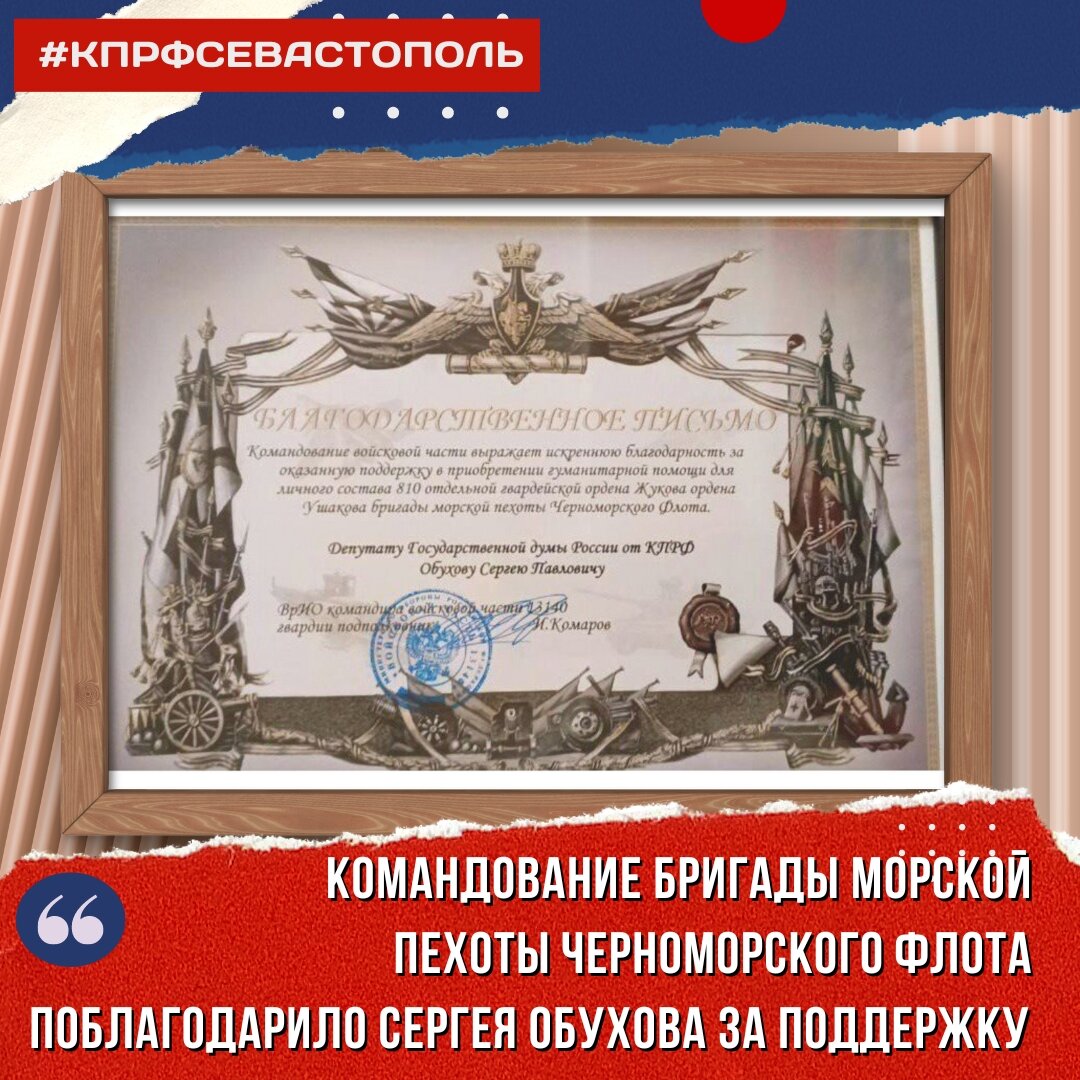 Командование бригады морской пехоты Черноморского флота поблагодарило депутата-коммуниста С.П. Обухова за поддержку