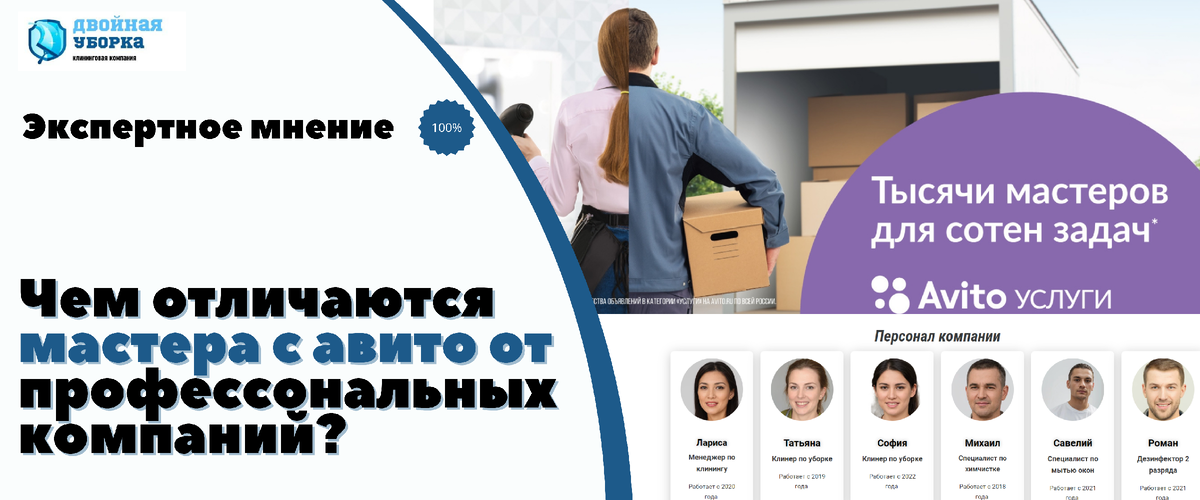 У нас в компании работают частные мастера ранее размещавшие свои услуги на площадке Avito. При выборе между профессиональной клининговой компанией и мастерами с Авито, важно учитывать свои потребности, ожидания и бюджет. Профессиональная клининговая компания может предложить высокое качество услуг, гарантию качества, обученный персонал, профессиональное оборудование, гибкое расписание и дополнительные услуги. С другой стороны, мастера с Авито могут быть более доступны по цене, но менее надежны по качеству и ограничены в своих возможностях.