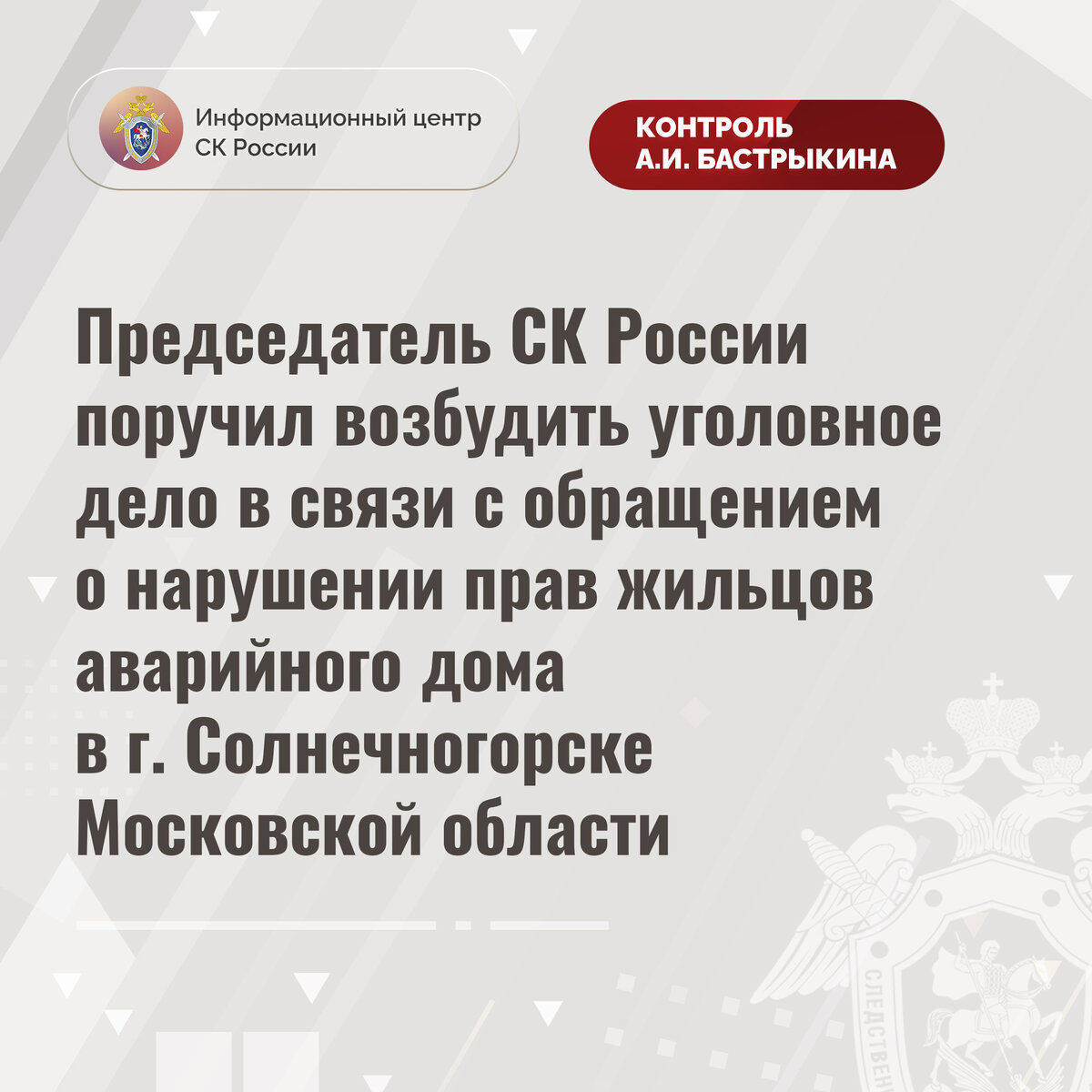 Председатель СК России поручил возбудить уголовное дело в связи с обращением о нарушении прав жильцов аварийного дома в г. Солнечногорске Московской области