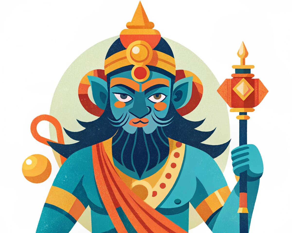 1. **Хануман - бог-обезьяна**: Хануман - центральная фигура в индуистской мифологии, и его часто изображают в виде обезьяны или получеловека-полуобезьяны. Он сын царя обезьян Кесари и царицы Анджаны.