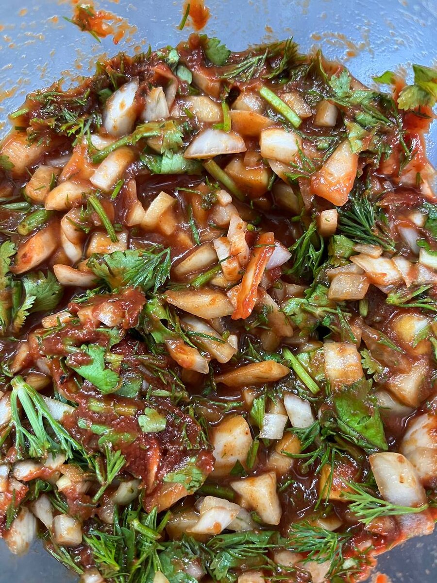 В этой статье я расскажу простой рецепт лучшего, по моему мнению, соуса для мяса на огне. Он подойдёт как для курицы, так и для говядины/свинины. Ингредиенты на ~2 литра соуса: Способ приготовления Лук нарезать небольшими кубиками. Мелко накрошить укроп и кинзу. Высыпать всё в тару в который соус будет настаиваться ~12 часов. Добавить томатную пасту и специи. Добавить воду, тщательно перемешать, закрыть соус и дать ему настояться. Всё! Ваш соус к мясу готов! Приятного аппетита!