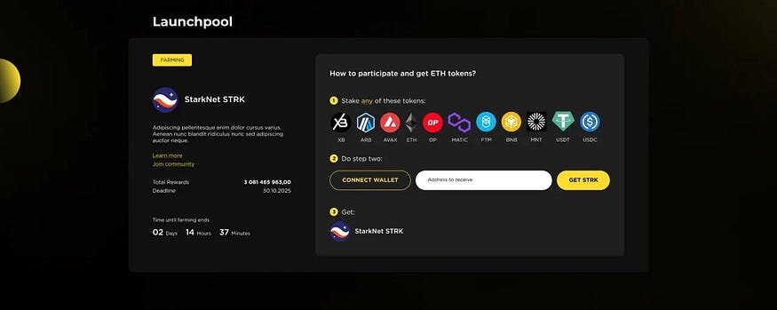 Перейти на сайт https://xbanking.org/launchpool Ознакомьтесь с условиями и правилами участия в Launchpool. Шаг 1: Перейдите на сайт https://app.xbanking.org и разместите любой токен в стейкинг, участвующий в Launchpool. Шаг 2: Вернитесь на страницу Launchpool https://xbanking.org/launchpool. Подключите кошелек, с которого вы размещали токены участвовавшие, в стейкинге. Вы можете разместить любое количество токенов в стейкинге, чем больше вы разместите, тем больше вознаграждений получите. Шаг 3: Укажите адрес кошелька, на который вы хотите получить токены, распределенные в Launchpad. Нажмите GET STRK. Готово! Дождитесь завершения лаунпула. Токены STRK будут распределены между вами, если вы выполнили все условия. Ссылки: Сайт | Сообщество |ЧАТ | X | Поддержка
