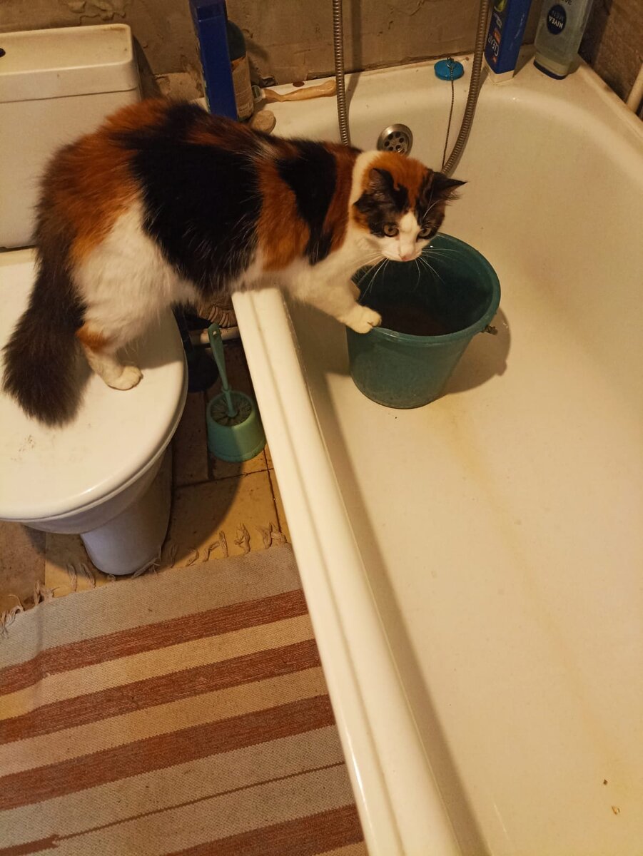 Моя кошка Ася пьет воду только из большого ведра. Вот таким образом, и не как иначе! И каждый раз надо наливать свеженькую. Королева да и только. И мы идем у неё на поводу, а как иначе, мы в ответе за тех кого приручили. Воспитанию она не поддаётся, все только по её. А если что не так, хвостом вильнёт и на улицу.