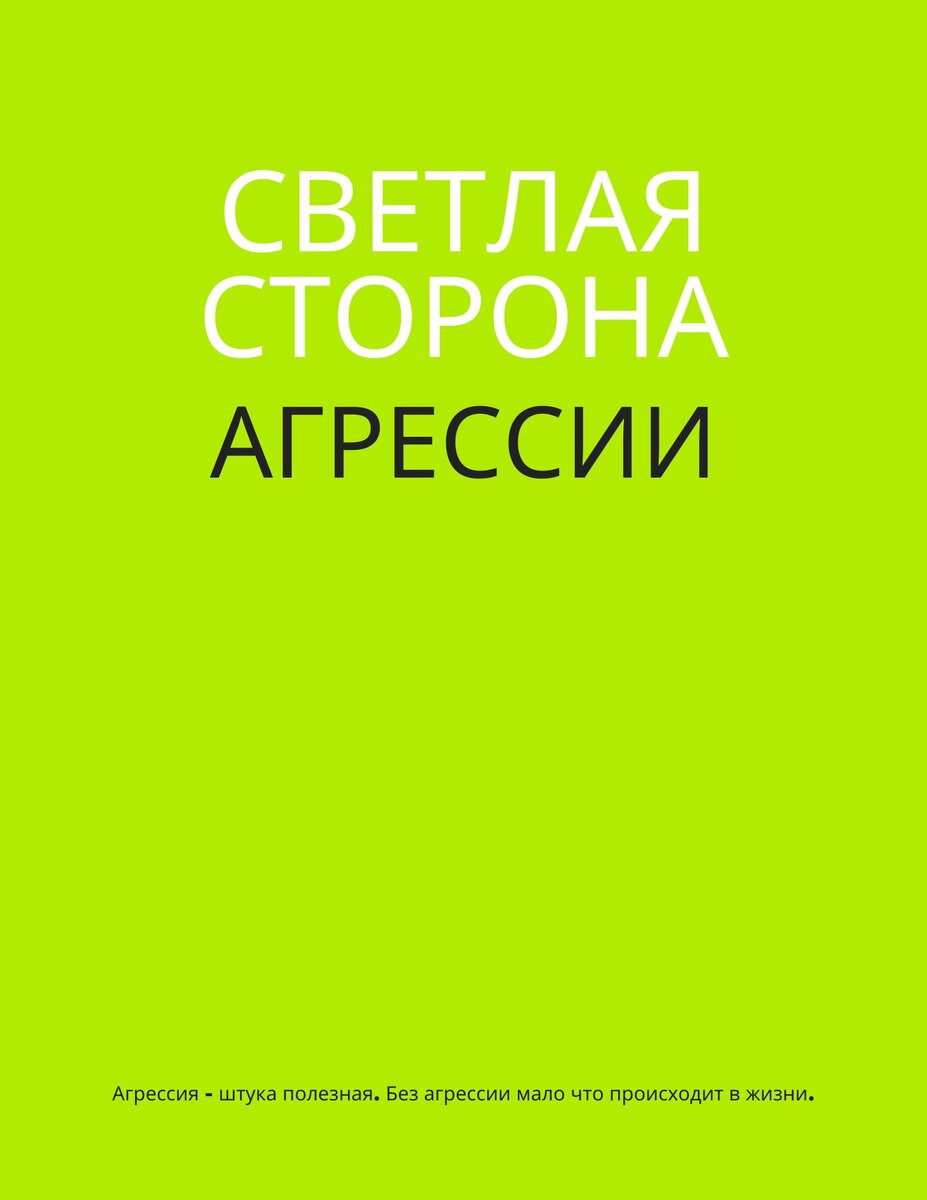 Агрессия воспринимается нами исключительно как негативное проявление, даже с греч. "Агрессия" переводится как нападение. Все ли так однозначно? Ни для кого не секрет, что для того, чтобы что-то происходило в нашей жизни, должен происходить обмен энергиями. Агрессия – это тоже некая энергия, которая помогает нам проявляться. Если агрессия - это энергия, тогда агрессией можно считать даже когда человек говорит, а все вокруг молчат. Энергия голоса по отношению к тем, кто молчит доминантна, а следовательно - агрессивна. То есть любой посыл во вне можно считать агрессивным. Я предлагаю абстрагироваться на время от привычного нам понимания агрессии и разбираться с этим понятием. Внутри себя нужно принять решение, что агрессия не равно злость. Давайте постараемся изменить представление об агрессии. Одной из функции агрессии является познание себя, своих желаний. Агрессия необходима для того, чтобы мы могли обнаружить самого себя. Что это значит? Для того чтобы развиваться, нам необходимо всту
