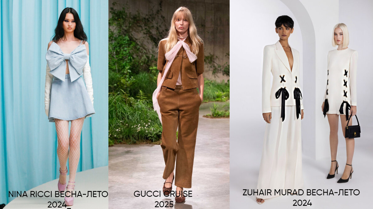 Банты были практически во всех самых главных модных коллекциях: Chanel, Nina Ricci, Simone Rocha, Valentino, Май Май (рос бренд), из массмаркета Love Republic. Если в гардеробе есть, например, какое-то достаточно простого фасона платье, то можно декорировать его светлыми бантами.