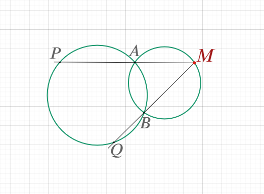 36. ★★☆ Две окружности пересекаются в точках A и B. На одной из них взята произвольная точка M. Прямые MA и MB пересекают вторую окружность в точках P и Q. Докажите, что длина хорды PQ не зависит от выбора точки M Идея доказательства