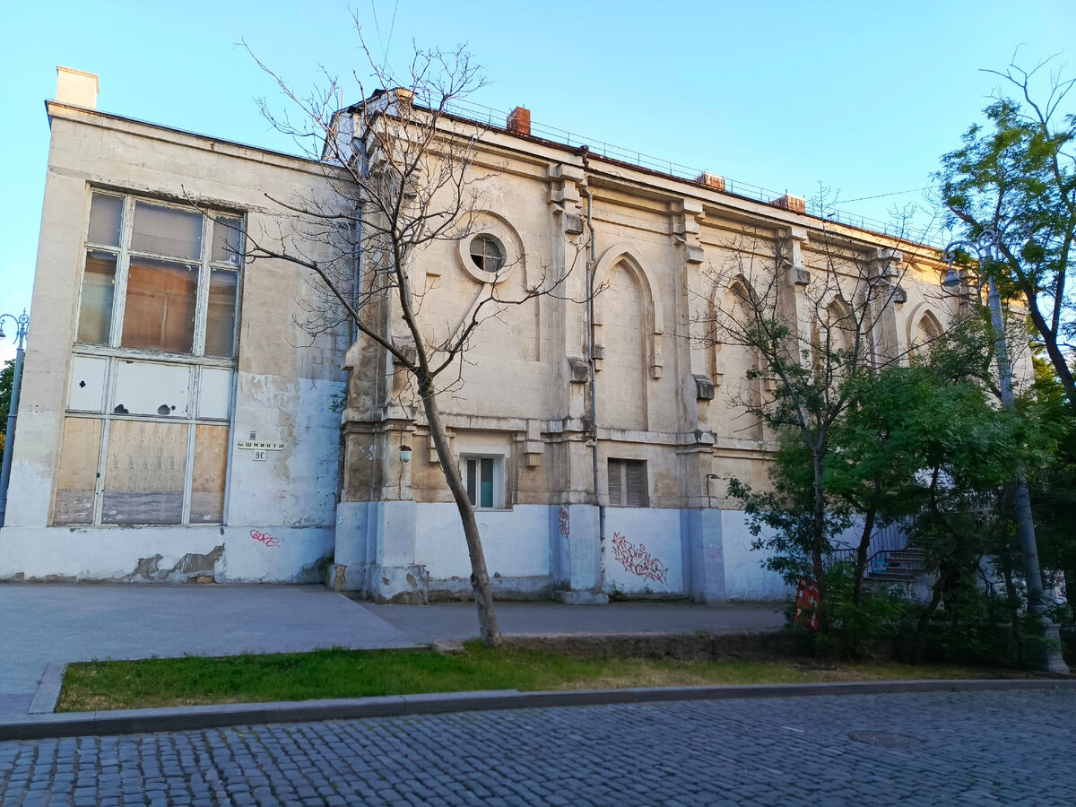 Сегодня покажу здание, которое когда-то было костёлом, затем стало детским кинотеатром. Расскажу о его судьбе и покажу в каком состоянии здание находится сейчас. Ну что, давайте пойдем посмотрим? Вчера мы с вами гуляли по дворам и вышли к этому, на первый взгляд, красивому зданию: Но не все здесь так красиво и просто. Костел был построен в 1911 году после неоднократных обращений католиков к царю. В 1930-х годах из-за малочисленности общины и невозможности содержать костел, он был закрыт. В 1941-1942 годах в этом здании находился радиоузел города, в итоге довольно быстро оно было разрушено. После ВОВ здание восстановили и сделали в нем детский кинотеатр "Дружба". После распада СССР в Севастополе была создана католическая община, которая ожидала возвращения храма. Но городской совет много лет в этом отказывал. В итоге дело дошло до Верховного Суда, который принял решение в иске отказать, т.к. в регистрационных документах города костел, как таковой, не числился, значит, и передава