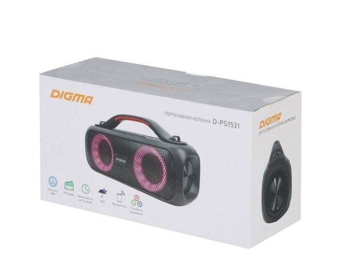 Здравствуйте дорогие подписчики и гости моего канала. Спасибо всем кто подписался на мой канал и читает мои статьи. Сегодня решил Вам всем рассказать о колонке которая понравилась мне. Портативная колонка Digma D-PS1531 обеспечивает до 15 часов непрерывного прослушивания музыки. Работает от встроенного аккумулятора емкостью 3000 мА*ч. Пластиковый корпус выполнен по стандарту пылевлагозащиты IPx5. Есть яркая подсветка динамиков. Сверху под ручкой для переноски располагается кнопочная панель управления. Технология True Wireless Stereo дает возможность подключать несколько устройств для создания стереогарнитуры. Разъем USB и AUX 3,5 мм позволяет воспроизводить музыку с внешних носителей. Есть световая индикация уровня оставшегося заряда батареи. Суммарная мощность колонки составляет 50 Вт. Поддерживает FM-радио. Встроен модуль беспроводной связи Bluetooth версии 5.1. Вес 2270 г. Стоимость данной колонки 3890 рублей. Продаётся в ма эльдорадо. Если есть бонусы эльдорадо то стоимость