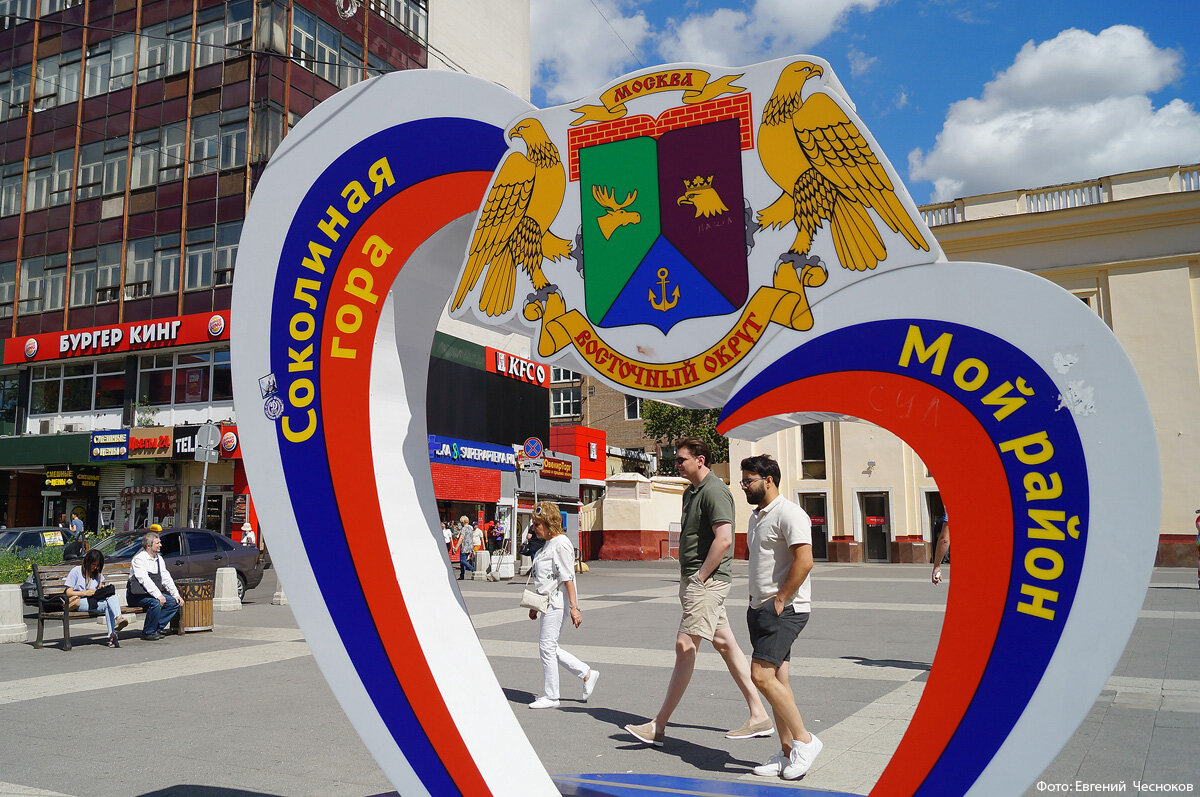 Измайловское шоссе, 15. Памятный знак «Рукопожатие» в «Ветеранском дворике» символизирует дружбу района Соколиная гора с белорусским городом-побратимом Могилёвым.