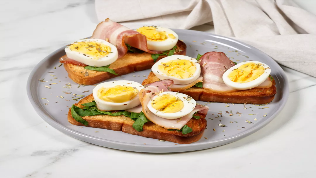 Тосты отличаются не только простотой приготовления, но и разнообразием вкусов, ведь начинку можно выбрать любую. В этом рецепте мы взяли свежий шпинат, бекон и яйца. Вам нужно подсушить хлеб в духовке, выложить на него зелень, несколько ломтиков бекона и кусочки сваренного яйца. Если хотите, чтобы закуска смотрелась оригинальнее, сварите яйцо не до конца, оставив желток полужидким — он будет очень красиво растекаться по тосту.