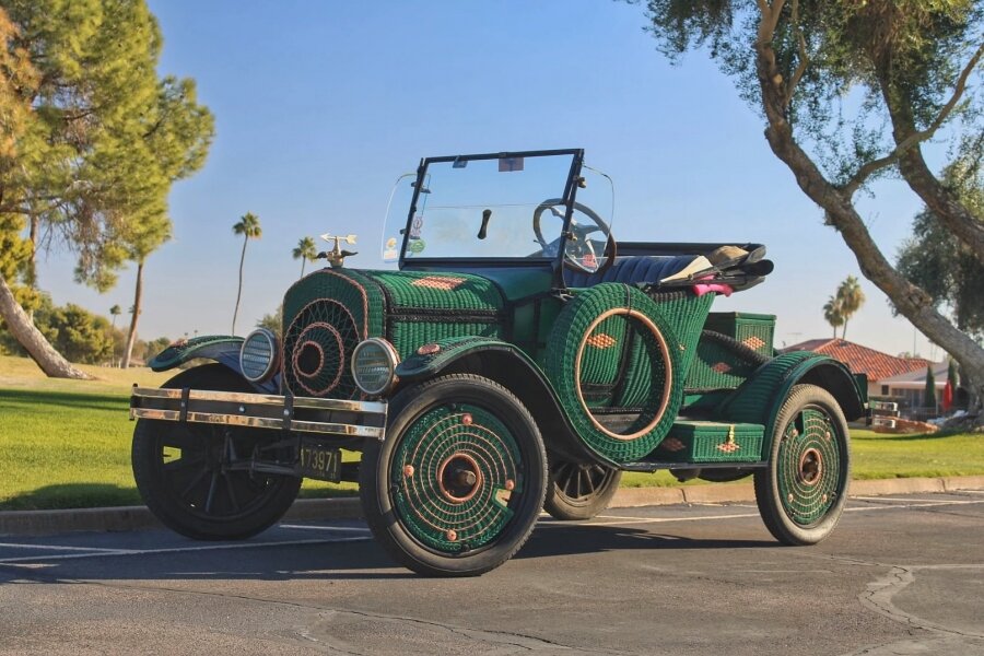 Ford Model T считается первым массовым серийным автомобилем. Он был продан тиражом более 15 миллионов единиц и сохранял звание самого продаваемого автомобиля в мире до 1972 года. Прошло почти 100 лет с тех пор, как с конвейера сошла последняя «Жестяная Лиззи», а Модель Т до сих пор можно увидеть на дорогах: тысячи экземпляров все еще работают и ездят благодаря их владельцам. Встречаются и уникальные экземпляры, например, вариант 1924 года выпуска с откидывающимся верхом, почти все элементы которого получили плетёное покрытие. Не только кузовные детали, но и колёсные диски, а также запасные шины, были покрыты плетением. Интересно, что такая отделка появилась на автомобиле очень давно, практически с тех пор, когда Model T был ещё новым, и поэтому является неотъемлемой частью его истории. Такая отделка появилась на автомобиле не случайно: похоже, что первоначальный владелец имел отношение к компании Lloyd Manufacturing Company. Она была основана в 1906 году Маршаллом Б. Ллойдом, человеком