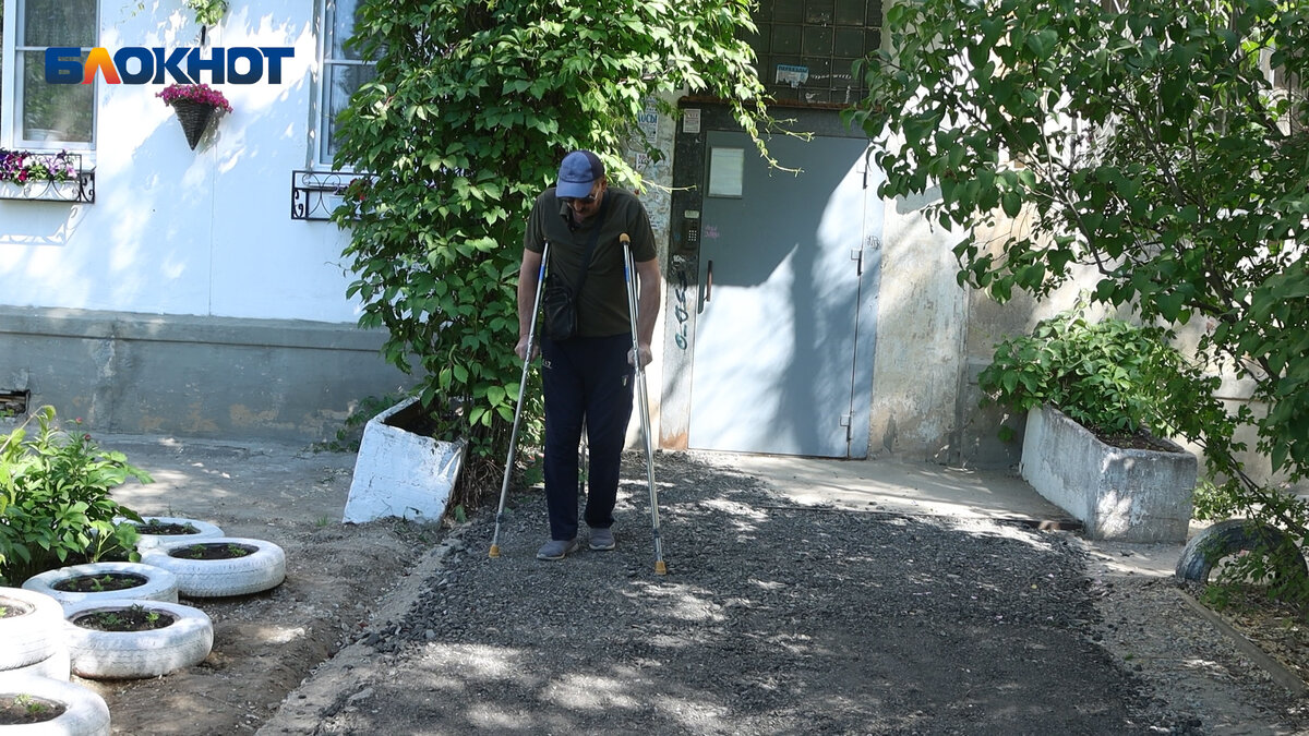 В редакцию «Блокнот Волжский» 19 мая обратился Юрий Ямолдин — житель Волжского, инвалид второй группы. Он рассказал, что из-за ужасного состояния придомовой территории не может выйти во двор. Мужчина рискует упасть и получить травму, поэтому вынужден сидеть дома. Юрий живет в доме 47 по улице Свердлова, он является инвалидом второй группы. На данный момент все недостатки и пробелы дороги, которая ведет к подъезду, решили засыпать гравием. Из-за этого «мусора», как выражается Юрий Ямолдин, волжанин не может без риска выйти на улицу. — С подъезда вышел, вот так вот встал (мужчина демонстрировал свое положение, прим. ред.) и у меня полетел костыль. Я чуть не шандарахнулся. Пошел дальше, и опять то же самое. Пока я вывернулся, четыре раза чуть не упал. Всё под ногами проваливается, шагать невозможно, — рассказывает Юрий.