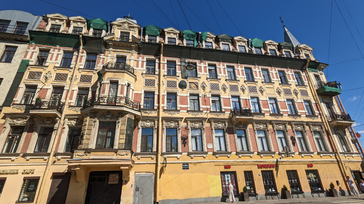 Друзья, приветствую вас на канале "Побег из Шоушенка". И снова мне удалось ускользнуть ненадолго из больницы, поэтому наш цикл прогулок вокруг Сенной продолжается. Тем более, что погода стоит просто замечательная, так и тянет прогуляться. Да и шаги надо нахаживать. В прошлый раз мы дошли с вами по Садовой до Дома с совами. А буквально рядышком, по той же стороне улицы можно увидеть ещё один прекрасный дом - Дом с флюгером. Действительно, прямо на Садовую выходит башня, украшенная флюгером. Это бывший доходный дом Кушелева, построил его архитектор Носалевич А.И. в 1900 году. Дом очень красивый, но, к сожалению, находится в не очень хорошем состоянии, фасад частично затянут сеткой. Напротив Дома с флюгером расположился островок природы и красоты в центре Петербурга - Юсуповский сад. Ограда и ворота сейчас на реконструкции, поэтому от Садовой сад отделяет некрасивый серый забор, но сам сад прекрасен. Посмотрите, какая красота! На берегу пруда очень много загорающих. А ещё в этот садик люб