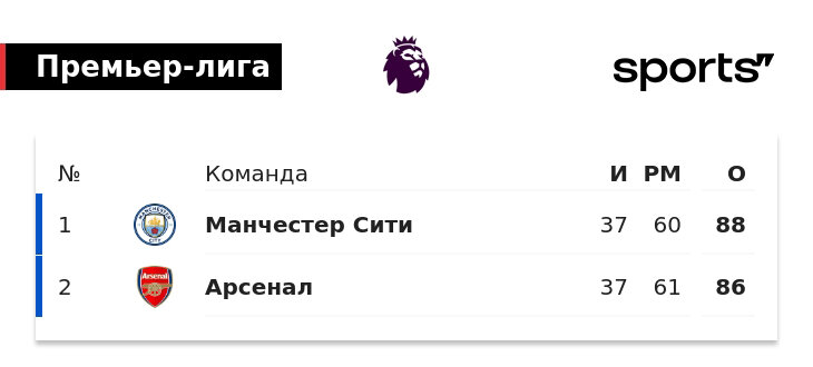 Расклады. Финиш чемпионской гонки в Англии: впереди последний тур, интрига жива. Хотя шансы «Арсенала» на титул не впечатляют. И все же расстояние до «Манчестер Сити» – всего два очка. «Сити» – явный фаворит «Ман Сити» примет «Вест Хэм», «Арсенал» параллельно играет с «Эвертоном». Согласно вычислениям суперкомпьютера Opta, явный фаворит – «Сити», на чемпионство Пепа дают 84,1%. «Арсенал» оценивают лишь в 15,9 процентов. Победа «Сити» = чемпионство «Сити» Все просто: если «Ман Сити» выиграет у «Веста Хэма», результат «Арсенала» ни на что не влияет. «Вест Хэм» не мотивирован и провел странный сезон. Уходит Дэвид Мойес, могут продать лидеров Лукаса Пакета и Мохаммеда Кудуса. Заряжен только форвард Микаил Антонио – он жаждет титула «Арсенала», надоела гегемония. Будет тяжело: в последний раз «Вест Хэм» обыгрывал «Ман Сити» в рамках АПЛ осенью 2015-го, с тех пор три раза сыграли вничью, проиграли 13 встреч. Единичный успех – проход в Кубке Англии в 2021-м: сидели в штрафной до пенальти и вз