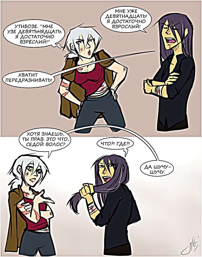 Противоположности притягиваются - это про них. Герои коротких забавных историй и артов - предводительница полукровок Электра и мафиози Зяо. Это спецвыпуск вселенной "Странного напарника" от российской художницы Джулии Голдфокс. Комиксы и арты из фанартов и набросков входят в отдельный сборник спешлов о персонажах под названием "Неприятные личности". В прошлых выпусках была довольно подробно рассказана история знакомства этой парочки, взаимодействие бывшего вора и полукровок, взаимная поддержка и первый поцелуй... Смертный и вечная сошлись, стали встречаться. Поженились или нет - неизвестно, но в у них есть общая дочка. Следующий выпуск как раз будет посвящён Юи и её родителям. Правда, жить вместе Эли и Зяо не стали. Азиат решил покинуть клан нелюдей, уехал на родину, чтобы жить среди людей. Там он смог сколотить собственную банду, в теневом мире стал известен как Серый Змей. Первые годы вместе На основе этого комикса был построен сюжет выпуска Инстинкты оборотня и вора. Эли спасал юн