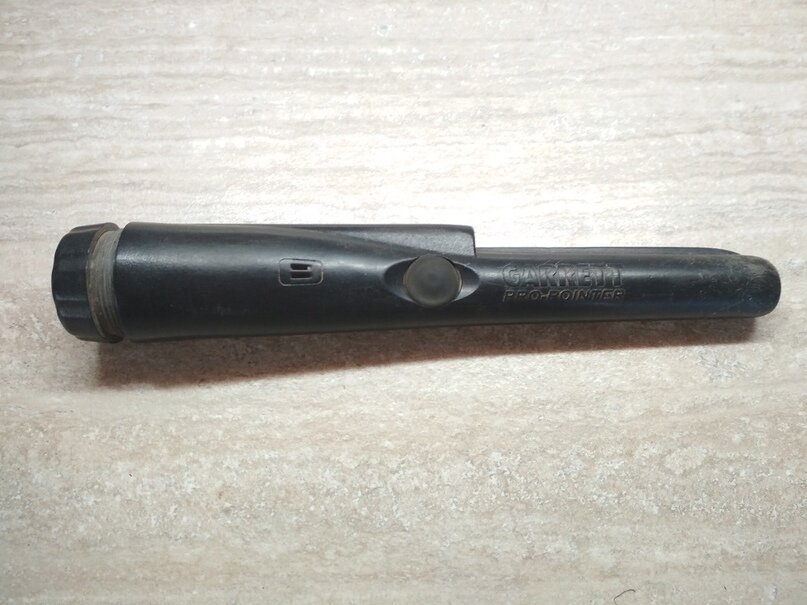 Идеально хороших приборов нет. У каждого есть косяки и недоработки. В данном пине слабое место это кнопка вкл/выкл, и ферритовый стержень датчика. Если с ремонтом первого(заменой) проблем нету, то со вторым нужно повозиться. Стержень с обмоткой в корпусе пина залит жёстким компаундом типа эпоксидки, из-за этого в случае деформация корпуса передаётся к ферриту, вплоть до поломки хрупкого сердечника. В итоге начинает глючить, вплоть до срыва в постоянный писк. И так, после падения на бетон, появились срывы в постоянный писк. Вариантов не много, и основной, это повреждение стержня. Отрезаю кончик корпуса. Получаем вот такой вид . Внутри и есть треснутый сердечник. Нагреваю нижнюю часть в кипящей воде. Можно конечно и в духовом шкафу разогреть, но корпус поведёт. Хотя , его повело и тут, или он был такой кривой х.з. Но когда всё собирал, пришлось разогревать до 120 градусов, и выравнивать. И так, по диаметру сердечника готовлю деревянную надставку из берёзы или дуба, чтоб выбить с