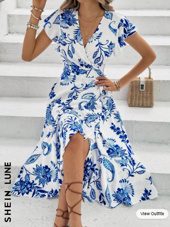 Прохладу подарят платья в сине-белых тонах. Если вам нравится гжель, то обратите внимание на то, что сейчас не только посуду расписывают в этом стиле, но и женские образы)