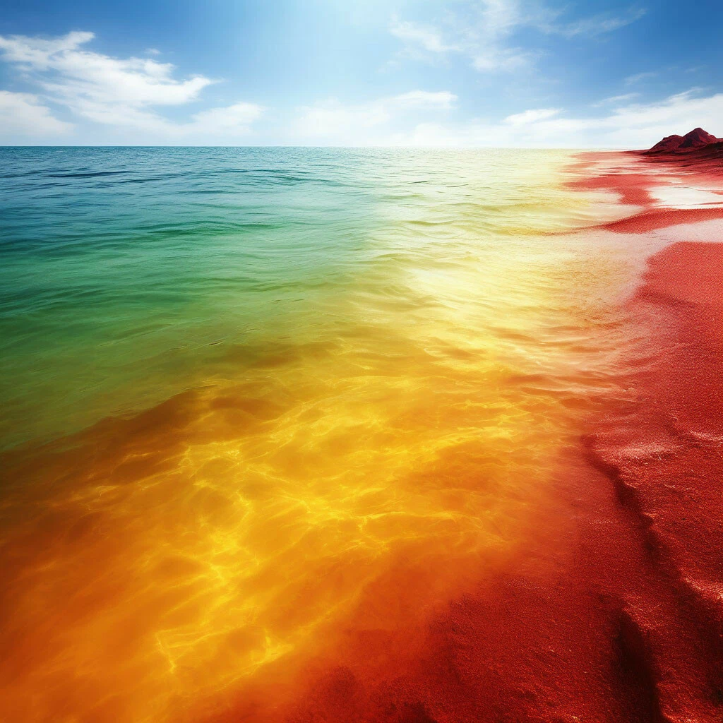 - Ой, как тут всё.- Всё, что смогла сказать Тея, оказавшись на красном песке, на берегу инопланетного океана, вода в котором у берега была жёлтого цвета, чуть дальше его сменял зелёный, а вдали она была привычной синей. Обернувшись назад она увидела метрах в десяти от берега заросли какого-то кустарника, такого же красного цвета, как и песок под её ногами, а за ним густой лес с очень высокими деревьями. Они были совершенно не такими, как на земле, но большинство из них было привычного зелёного цвета. А как же удивило её небо. Оно было похоже на привычное земное или небо Сунтара, но казалось таким низким, что хотелось нагнуться, чтобы не врезаться в облако.