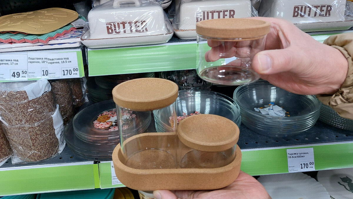 На фото, справа, видно, еще есть контейнеры объемом 0,4/0,5 л, аналогичной формы, цена 68 рублей.