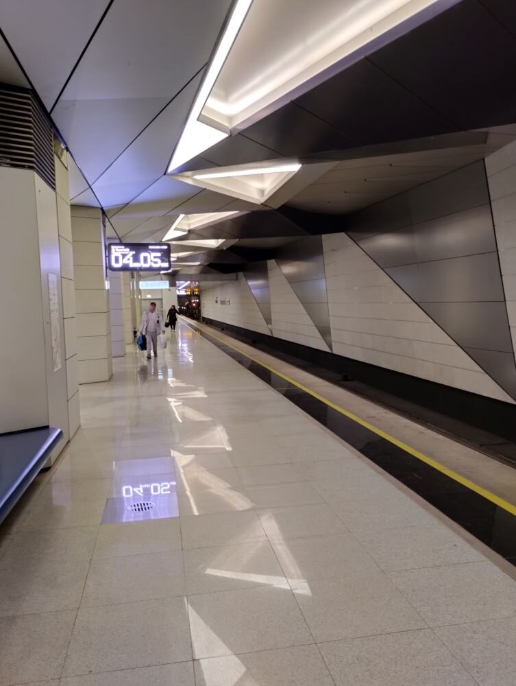 Строители постарались: получалась очень хорошая связка из станции метро и станции аэроэкспресса и здания аэровокзала - не надо никуда бежать. Здесь всё сделано четко, хотя, по традиции, вход в аэропорт сделан темным.