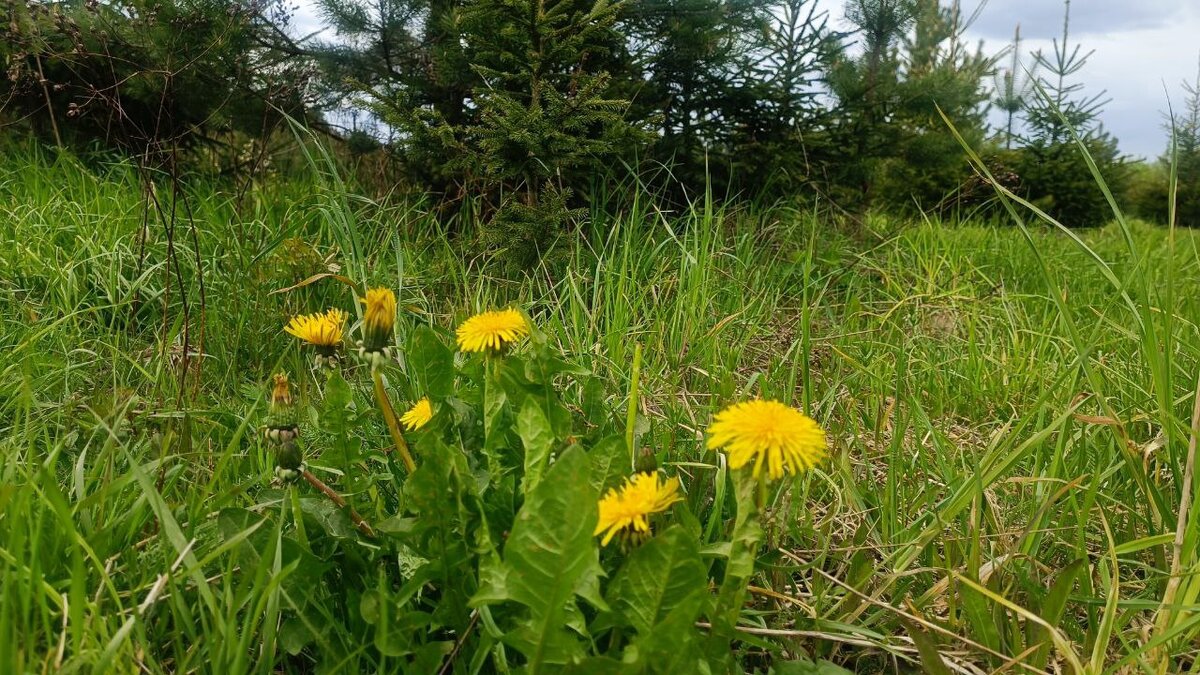 На полянке у леса возвращаясь с утренней прогулки, я нарвала одуванчиков и свежей сныти. Быть сегодня салату!