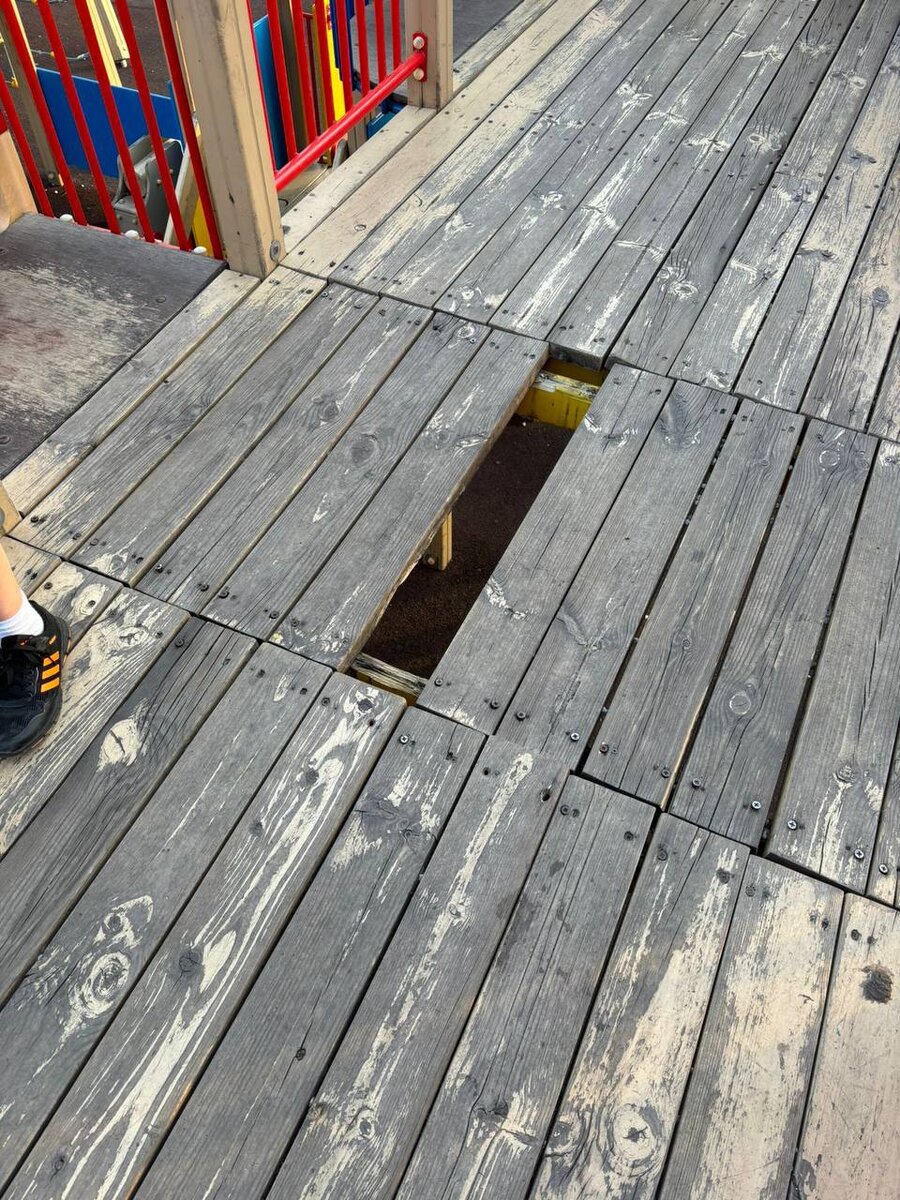 В центре Волгограда у музея "Россия – моя история" маленький мальчик угодил в ловушку на детской площадке. Об этом "Блокноту" сообщили возмущенные родители ребенка. Накануне, 18 мая, в городе прошла акция "Ночь музеев". 3-летний мальчик с папой отправился в музей на экскурсию, а после они решили остановиться у расположенной рядом детской площадки. В какой-то момент нога малыша попала в дыру, после чего ребенок упал. Это привлекло внимание окружающих, которые заметили, что на деревянном покрытии площадки не достает одной детали. Это вызвало негодование горожан, которые посчитали, что такое состояние сооружения является травмоопасной для детей. – Травм не было, небольшая ссадина осталась. Ребенок испугался, больше не лазал. Все были возмущены, – рассказал отец мальчика Илья. Горожане требуют, чтобы площадку привели в порядок и устранили дыру, поскольку дети могут получить серьезные травмы. Стоит отметить, что данная площадка не относится к парку "Раздолье". Напомним, ранее мы писали о то