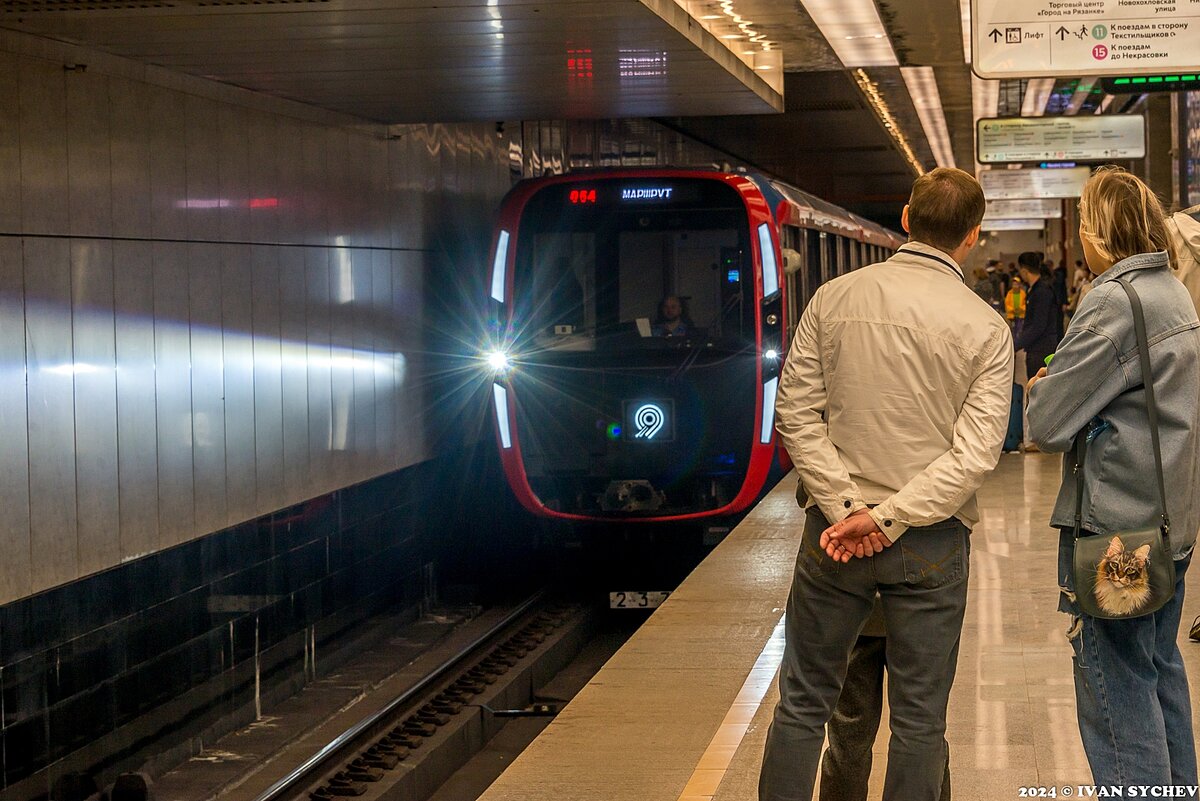 В этом году получилось так, что на парад я попал только лишь во второй день, а именно 19 мая, так как 18 мая был загружен. И это не позволило сделать полноценную серию фотографий: не удалось сделать фотографии людей в форме работников метрополитена разных лет и, самое обидное, сняли с маршрута «Москву-2024», которую пока никак не могу поймать (да и не сильно, скажем так, стремлюсь, точнее, имею не так много возможностей). В общем, текст на этом, скорее всего, заканчивается, а далее большой фотоальбом из более чем двух десятков фотографий. Ах да, место съемки – станция БКЛ Нижегородская. 1-2. Жду парада не только я. Людей вполне себе хватает. Причем, кто-то как и я, все время в одно место, а кто-то едет в поезде и выходит, фотографирует, ждет следующего и на нем переезжает дальше. 3-5. И пошли по поездам. Открывал Парад, по традиции, поезд-реплика вагонов 1935 года с названием «Сокольники». 6-7. «Ежик», или официально ЕЖ3. 8-9. У этого поезда официального названия нет, поэтому все метро