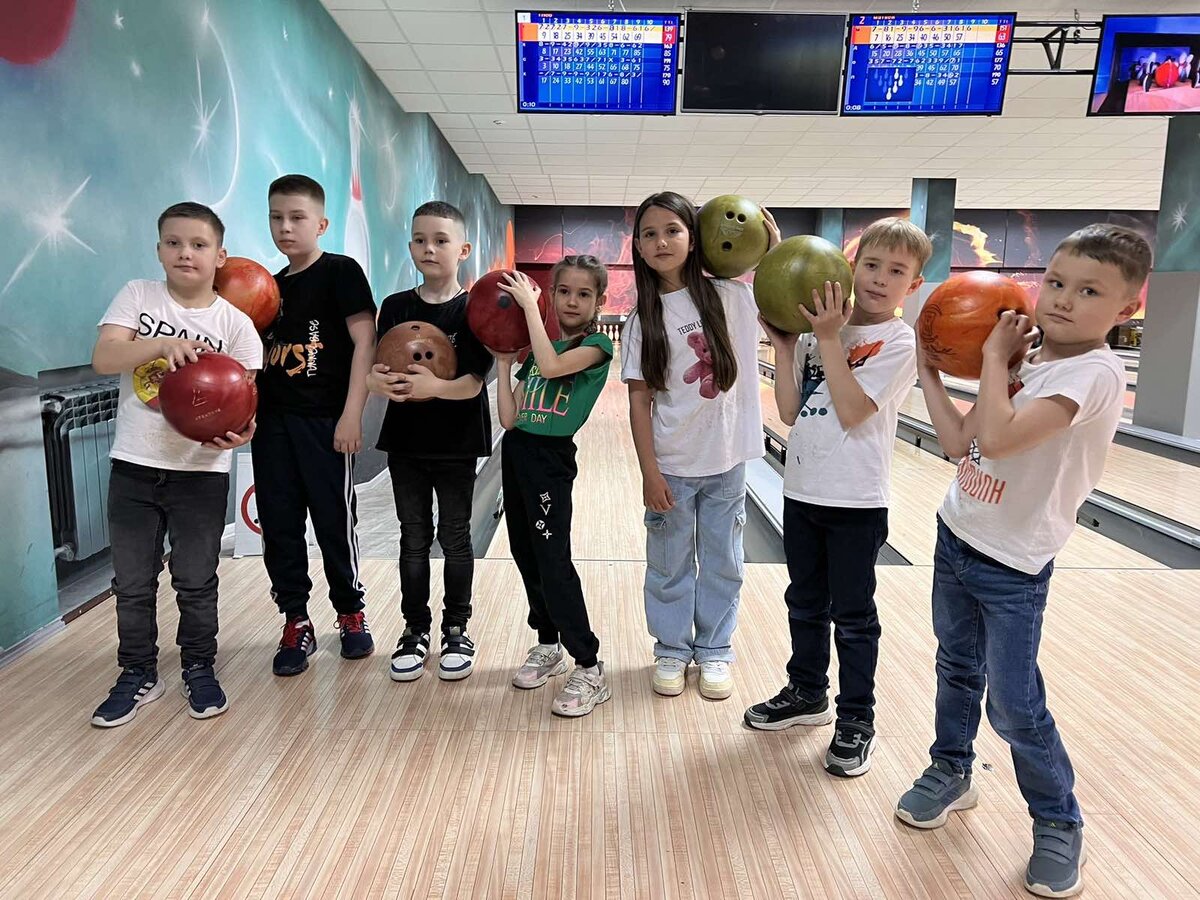 Впервые на детский день рождения Кирюшку пригласили в боулинг - клуб. Обычно же как бывает - развлекательные детские центры, батуты, аниматоры конкурсы, фокусы, музыка и тд. Кирилл, кстати говоря, недолюбливал аниматоров. Не нравились они ему, не интересно ему было, знал, что они не настоящие, а это всего лишь дяди и тёти в костюмах. А тут раз, и боулинг. Надо сказать, что парень наш в боулинг-клубах ещё не бывал, о страйках ничего не знал, но имел какое-то представление обо всём этом, наверное, из телевизора. Поэтому особого энтузиазма у него не наблюдалось. И даже под нос себе тихо ворчал по дороге туда, что ему скорее всего не понравится..) Я, честно говоря, тоже немного сомневалась (молча, про себя, не подавая виду), думала, что восьмилеткам поднадоест там, не будет получаться сбивать кегли, устанут или ещё что-нибудь... А оказалось, наоборот, дети были в восторге! И, забегая вперёд, скажу, что двух часов забронированных им не хватило. Только вошли во вкус, а время вышло. Дет