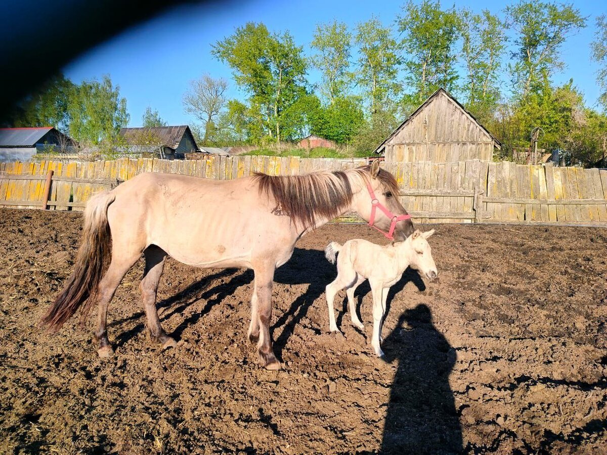 Девчонка родилась сегодня, мамка-папка башкирские. Назвали Белоснежкой :) Пока она бежевая, уже ремешок по спине проглядывается, наверняка куда-то перелиняет потом. Самостоятельнаяяяяяя...! ))) За мамкой не ходит, мамке приходится за ней бегать. Через 3 часа после рождения ушла из приоткрытого денника изучать мир, поймали в проходе, привели обратно родителю. А то пока лошадей перетасовали, мамка пришлось привязи держать. И в связи с этим пополнением, спешно продается пегий пони Пряник. Он же Понич. Жеребец, адекватный, понимающий. Не в работе. Живет у нас просто для украшения. Дети на нем периодически катаются. По поводу покупки пони, обращаться к хозяйке Людмиле в Телеграм @bereginya Находимся в Московской области Ступинский район.