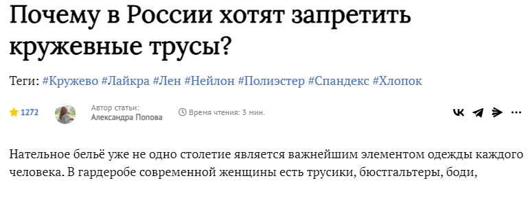 Почему нельзя носить кружевные трусы? Помню, была целая кампания по очернению имиджа кружевных трусов. Даже на уровне Госдумы обсуждали, как бы их запретить. Нет, у меня не начался бред, вот новости 2013 года: