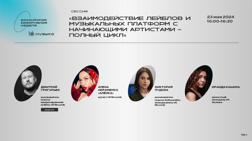 Отдельное внимание будет уделено тому, как лейблы поддерживают таланты из регионов, на примере успешных практик. Наконец будет проведена дискуссию на тему цифровой платформы как инструмента продвижения творца и возможных способов продвижения и реализации творческого потенциала. Сессия «Взаимодействие лейблов и музыкальных платформ с начинающими артистами - полный цикл» пройдет 23 мая в 15:00. Зарегистрироваться на мероприятие и посмотреть программу можно на сайте: https://music.creativityweek.ru.