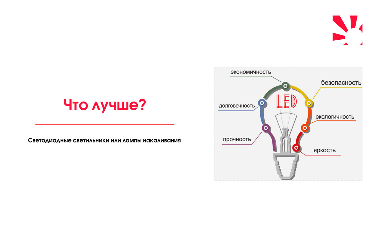 Световая технология постоянно эволюционирует, и одним из наиболее значимых достижений стал переход от ламп накаливания к светодиодным светильникам. В этой статье мы рассмотрим, почему светодиодные светильники считаются лучшим выбором по сравнению с традиционными лампами накаливания. 1. Энергоэффективность Светодиодные светильники потребляют гораздо меньше электроэнергии по сравнению с лампами накаливания. Например, чтобы получить такой же уровень освещенности, светодиодный светильник потребляет в 4-5 раз меньше электроэнергии, что значительно снижает расходы на электричество. (Светодиодные светильники имеют высокий КПД (коэффициент полезного действия) благодаря прямому преобразованию электрической энергии в свет. Энергопотребление светодиодных светильников значительно ниже, что позволяет сэкономить до 80% энергии по сравнению с лампами накаливания.) 2. Долговечность и надежность Светодиоды имеют значительно более длительный срок службы по сравнению с лампами накаливания. Обычно светоди