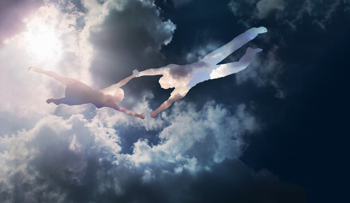Волшебная сила любви наполняет тела сновидений обоих своей просветлённой энергией и естественным образом притягивает двоих, и они летают...
