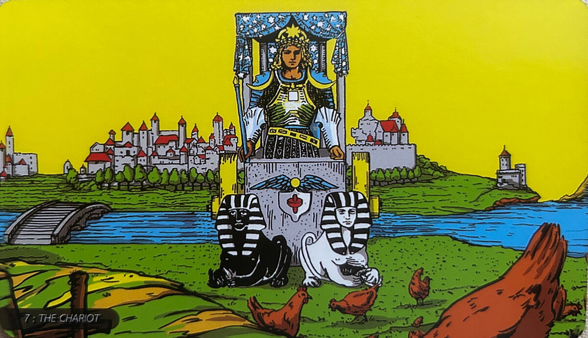 Когда выпадает Колесница в раскладе, можно быть уверенным: скучно точно не будет! Эта карта — настоящий двигатель прогресса, стремления и побед. Если Колесница решила заглянуть к вам в гости, приготовьтесь к путешествию, в котором вас будут подгонять легкий ветерок перемен и улыбка юмора. Ведь кто сказал, что нельзя учиться и веселиться одновременно? Общее значение: Колесница — это карта, которая воплощает движение вперёд, силу воли и решимость. Представьте себе гонщика Формулы-1, который мчится к финишу, не обращая внимания на препятствия. Она говорит: «Хватит сидеть на месте! Пора действовать и побеждать!». Колесница не приемлет никаких отговорок. Забудьте про уютный диван и Netflix — пора наводить шороху в своей жизни. Главное — держите курс и не дайте себе сбиться с пути, даже если вокруг царит хаос и паника. Любовные отношения: Ах, любовь на колесах! Колесница в любовных отношениях — это когда вы и ваш партнёр мчитесь на всех парах, преодолевая препятствия и наслаждаясь скорость