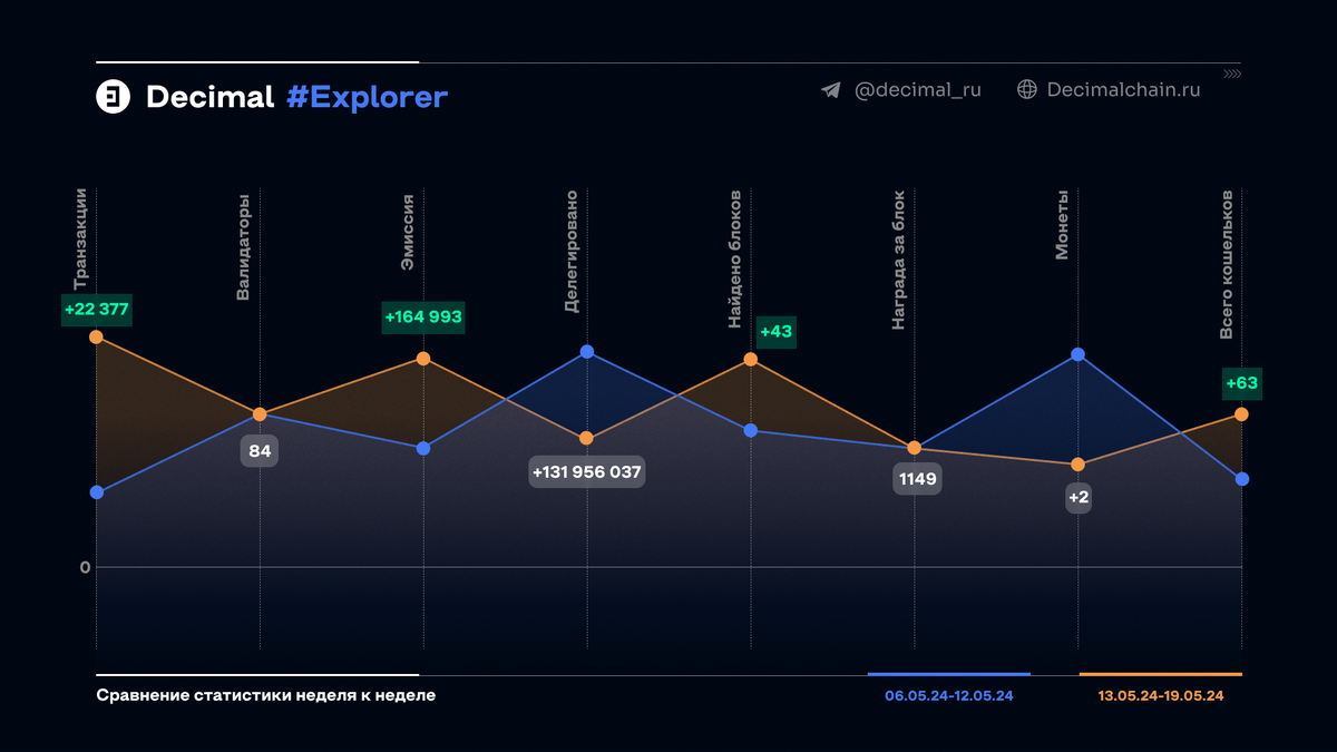 Сравнительная аналитика блокчейна Decimal за период 13.05-19.05 и 06.05-12.05: