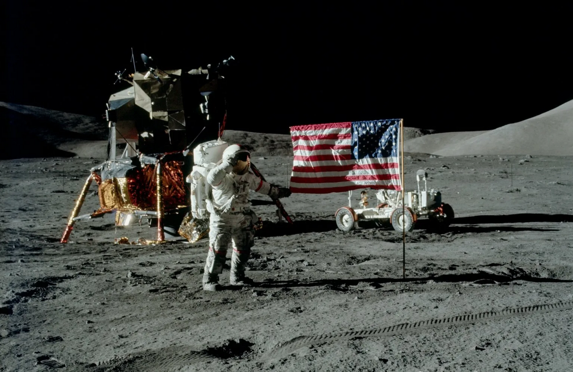 2. Колышется флаг над просторами Луны.