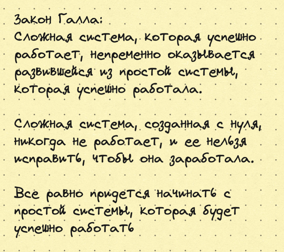 Не надо всерьез проектировать “идеальную” систему или технологию. Команды, пытающиеся создать идеальный продукт на бумаге, до запуска, могут потерпеть неудач