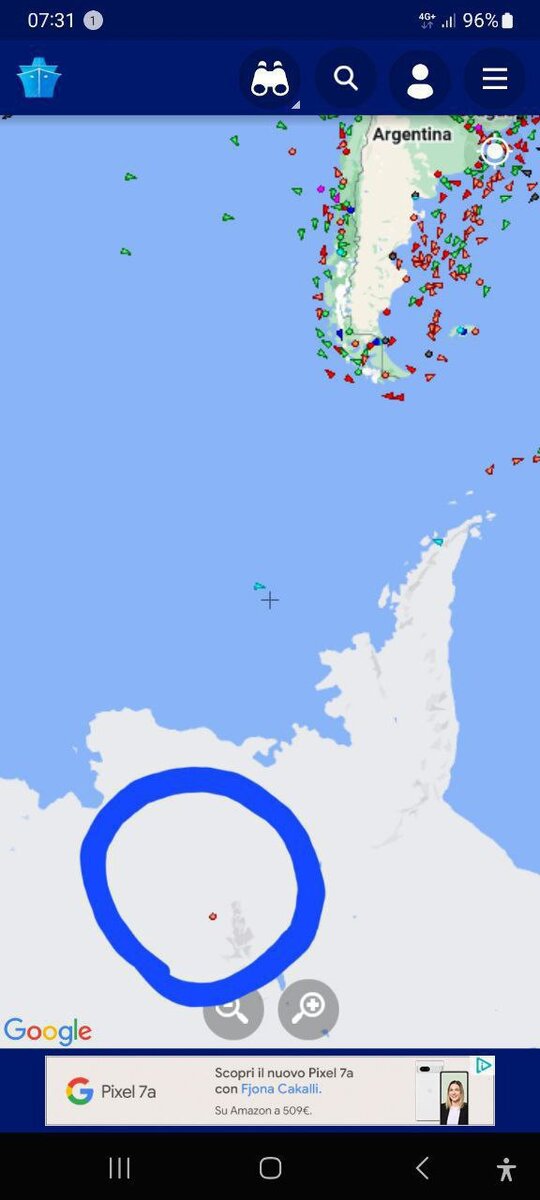 Нам нельзя за 60-ю параллель, но, судя по приложению MarineTraffic, какие-то суда передвигаются в глубине Антарктиды, где вокруг них нет ни озер, ни рек!? И что значит статус: "не находится под командованием"? Т.е. все-таки есть какие-то корабли, которых не имеют права останавливать? За пару дней периодического наблюдения, по крайней мере, один объект был обнаружен в глубине континента. При попытке открыть информацию о них возникает лишь белое окошко. Сколько ни жди, данные там не появляются. А вот все другие суда, двигающиеся не в глубине Антарктиды, если нажать на них, немедленно показывают всю информацию о себе.